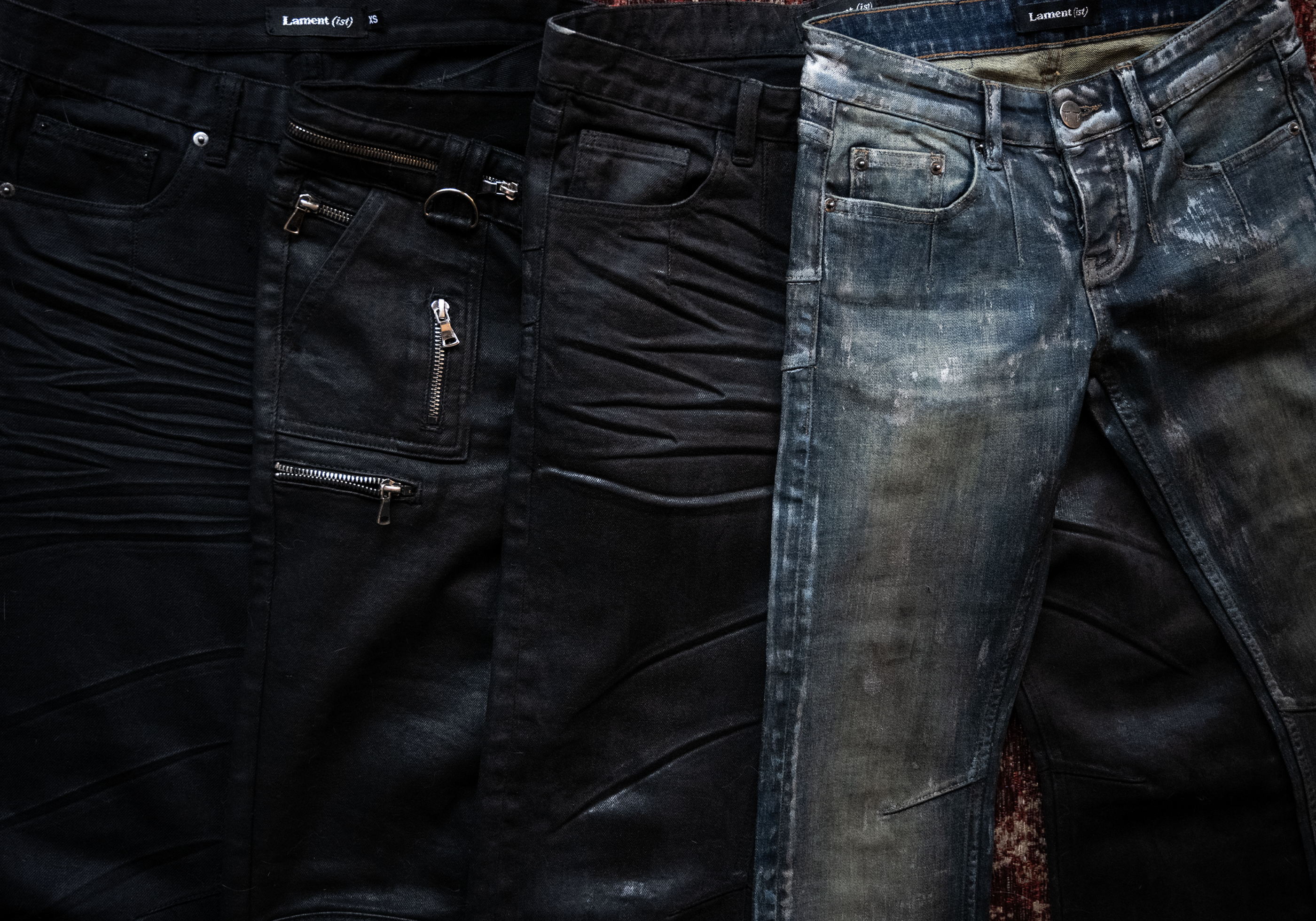 ALL OUR DENIM FEATURE: 100% SELVEDGE COTTON DENIM - 100% SILK MAIN LABELS - 100% REAL LEATHER BACKTABS - CUSTOM EMBROIDERY ON BACK POCKETS - PRESSURISED WHISKERS - HAND APPLIED WAX - FREE SIZE EXCHANGES.